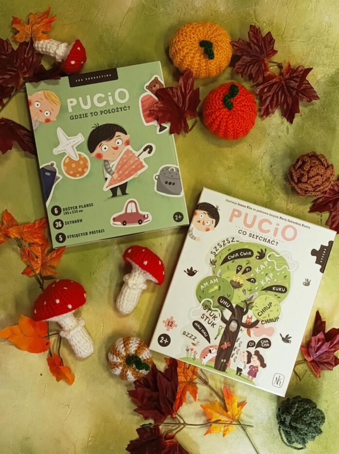 W pudełku znajduje się 6 plansz z różnymi pomieszczeniami w mieszkaniu należącym do rodziny naszego bohatera. Do każdego z nich dopasowano po 6 żetonów z przedmiotami charakterystycznymi dla tych pomieszczeń. Dziecko układa przedmioty w odpowiednich miejscach na planszach (np. na stoliku w salonie, pod krzesłem w kuchni, w pudełku) według załączonej instrukcji lub poleceń wymyślonych przez rodzica. Uczy się przy tym rozumienia stosunków przestrzennych, czyli położenia przedmiotów względem siebie. Dodatkową atrakcją są stojące postaci bohaterów książek o Puciu, które można wykorzystać także w innych dziecięcych zabawach.